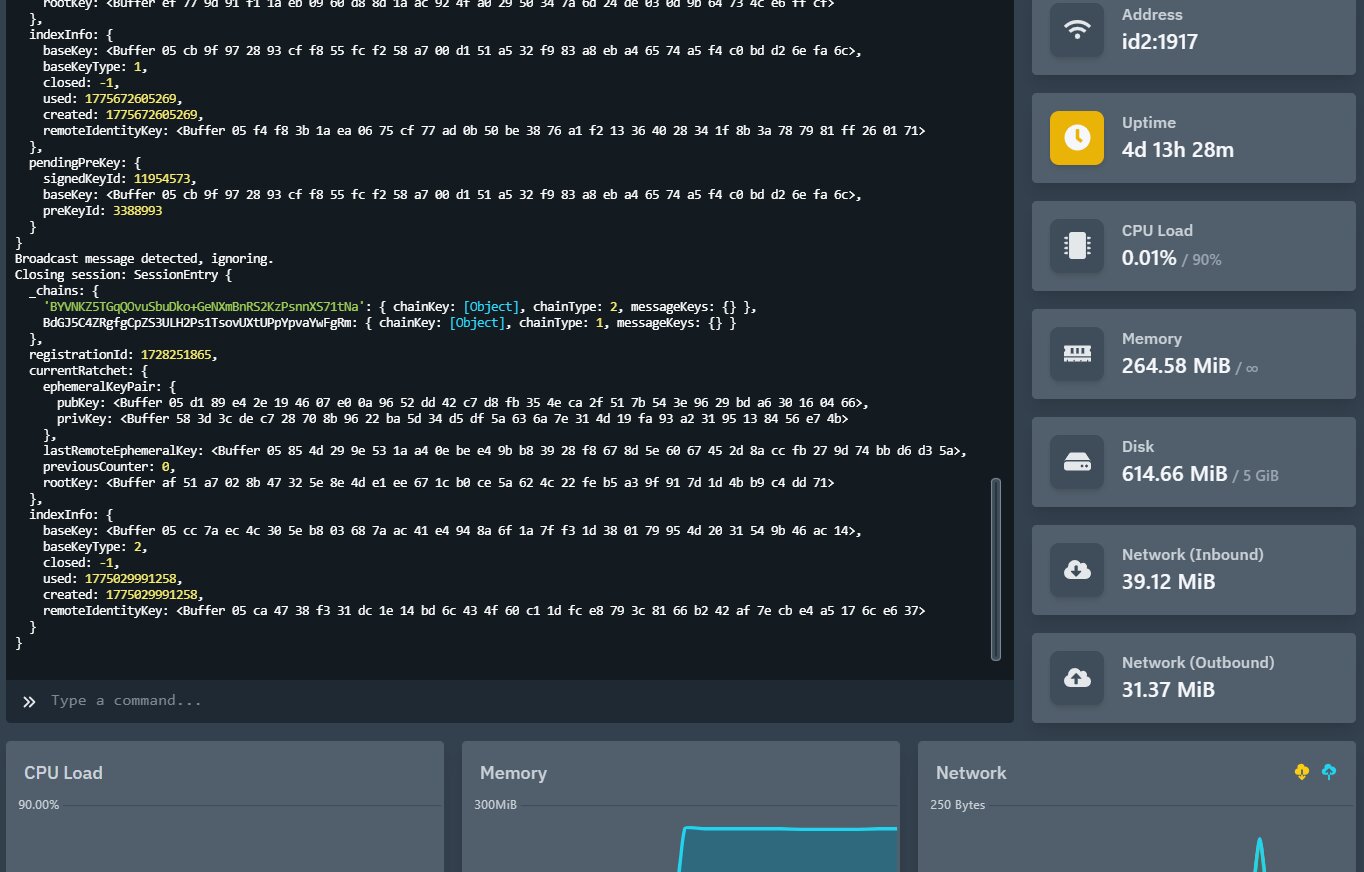 Panel Pterodactyl (untuk jalanin script bot WA) maks CPU 90%